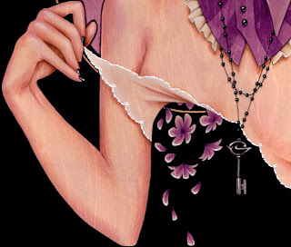 I just finished my latest painting for my next show. I'm really loving the solid black backgrounds on these with the bits of gold trim. This piece is titled "Let Me Show You My Secrets" and is 18x24inches acrylic on wood 2011.