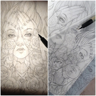 I've been getting a lot of questions about how I turn my sketches into full paintings. So I decided to make a step by step tutorial on my process. I use a transfer rub method using tracing paper. It can get a little tedious but I prefer it to using a projector because I feel like the transfer is a little more precise.