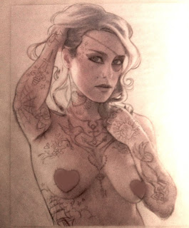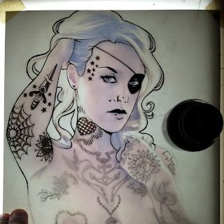 Here are some process shots so you can see how I set about painting the tattoos on the actual photograph.