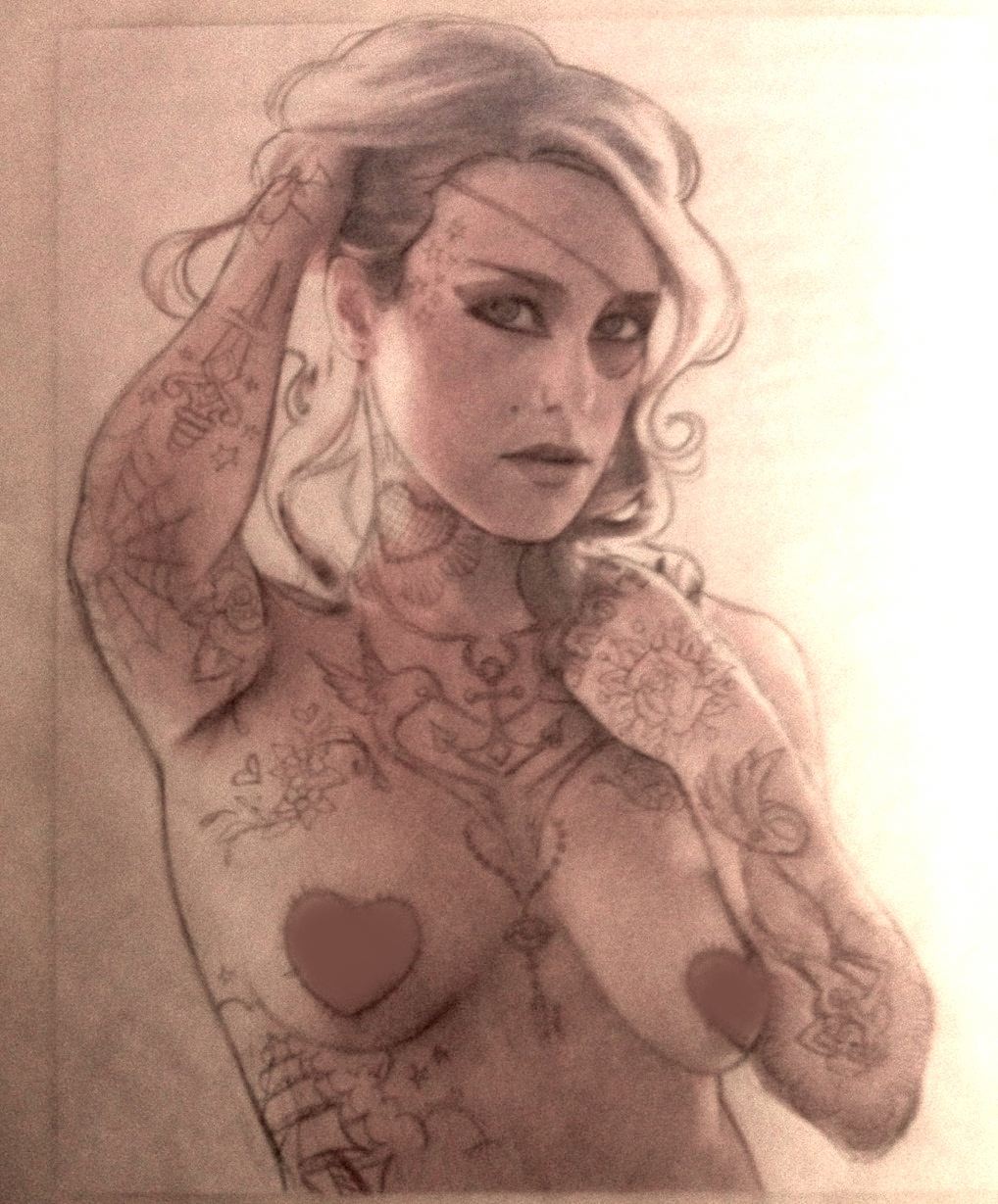 When I received the photo from Amy, I threw a piece of tracing paper on top of it to design the tattoos and map out where I wanted to place them on the model.